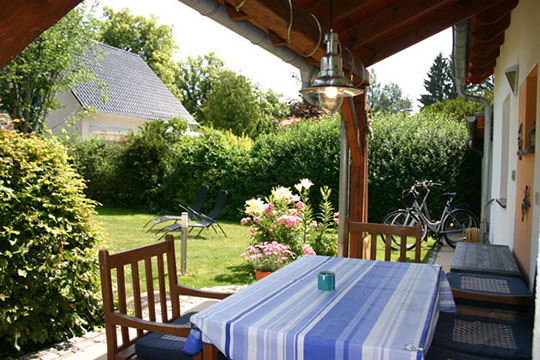 überdachte Terrasse mit Garten